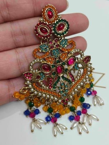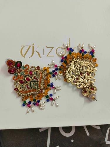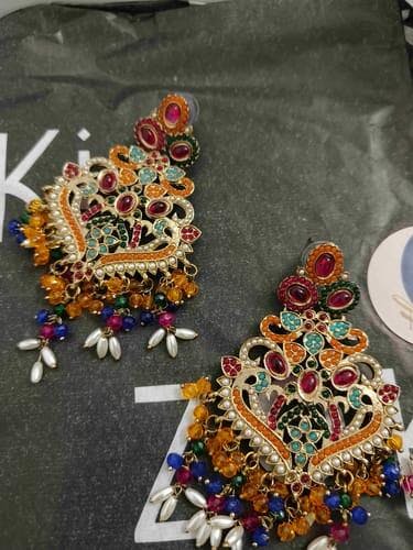 Design: Statement earrings featuring a striking teardrop shape adorned with sparkling crystals and a central pink gemstone for a touch of elegance.