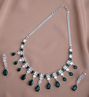 Elevate your style with the Grace Emerald Necklace Set, featuring cascading teardrop-shaped emerald-green stones framed by sparkling cubic zirconia accents. The necklace reflects light with every movement, while the matching earrings mirror the same elegance. Ideal for weddings, formal events, or any occasion requiring sophistication, this set combines rich color, clarity, and craftsmanship. With an adjustable chain for versatile styling, the Grace Emerald Necklace Set is a cherished addition to any jewelry collection, exuding poise and charm.