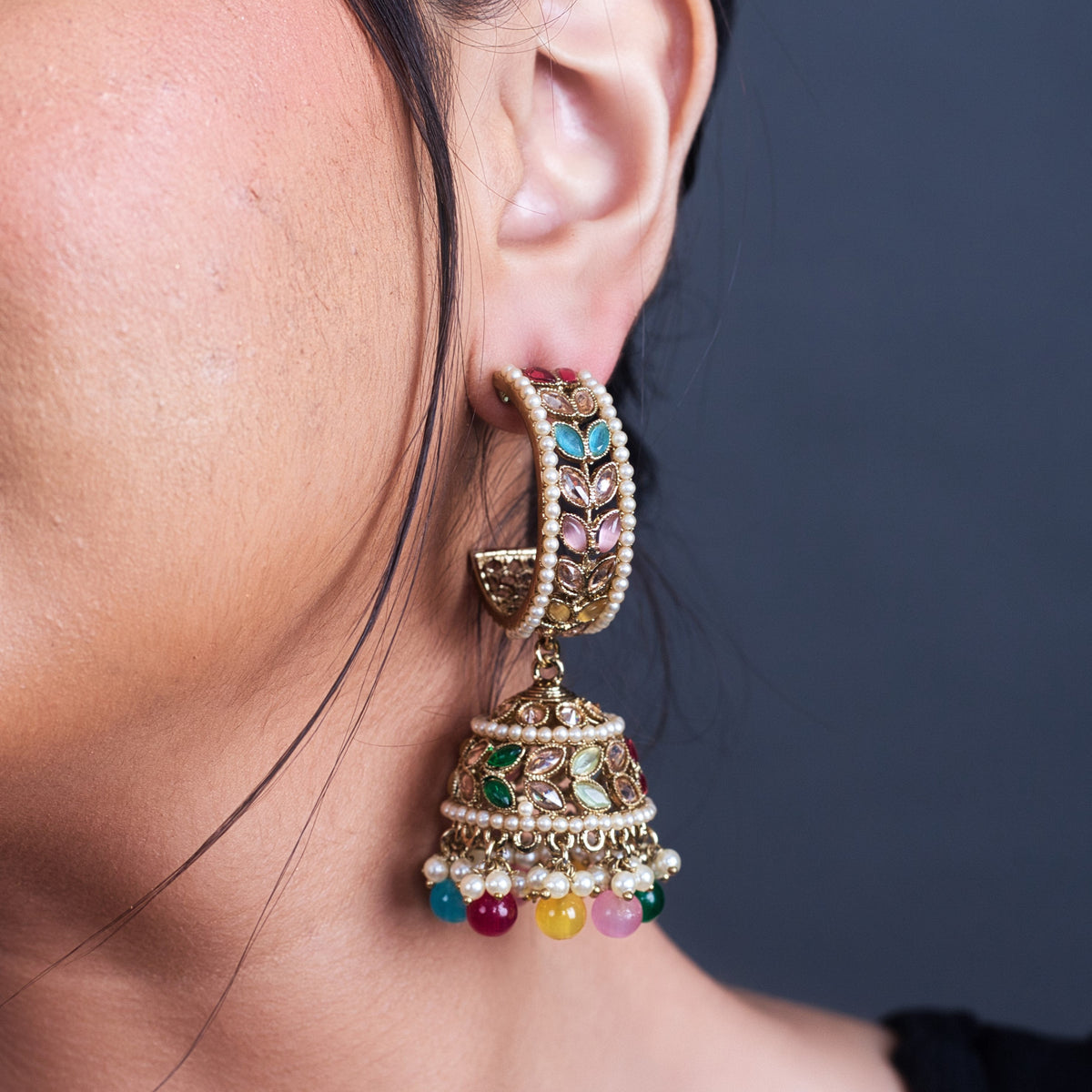 RANIA CHANDBALI EARRINGS - Multi-Color Brass