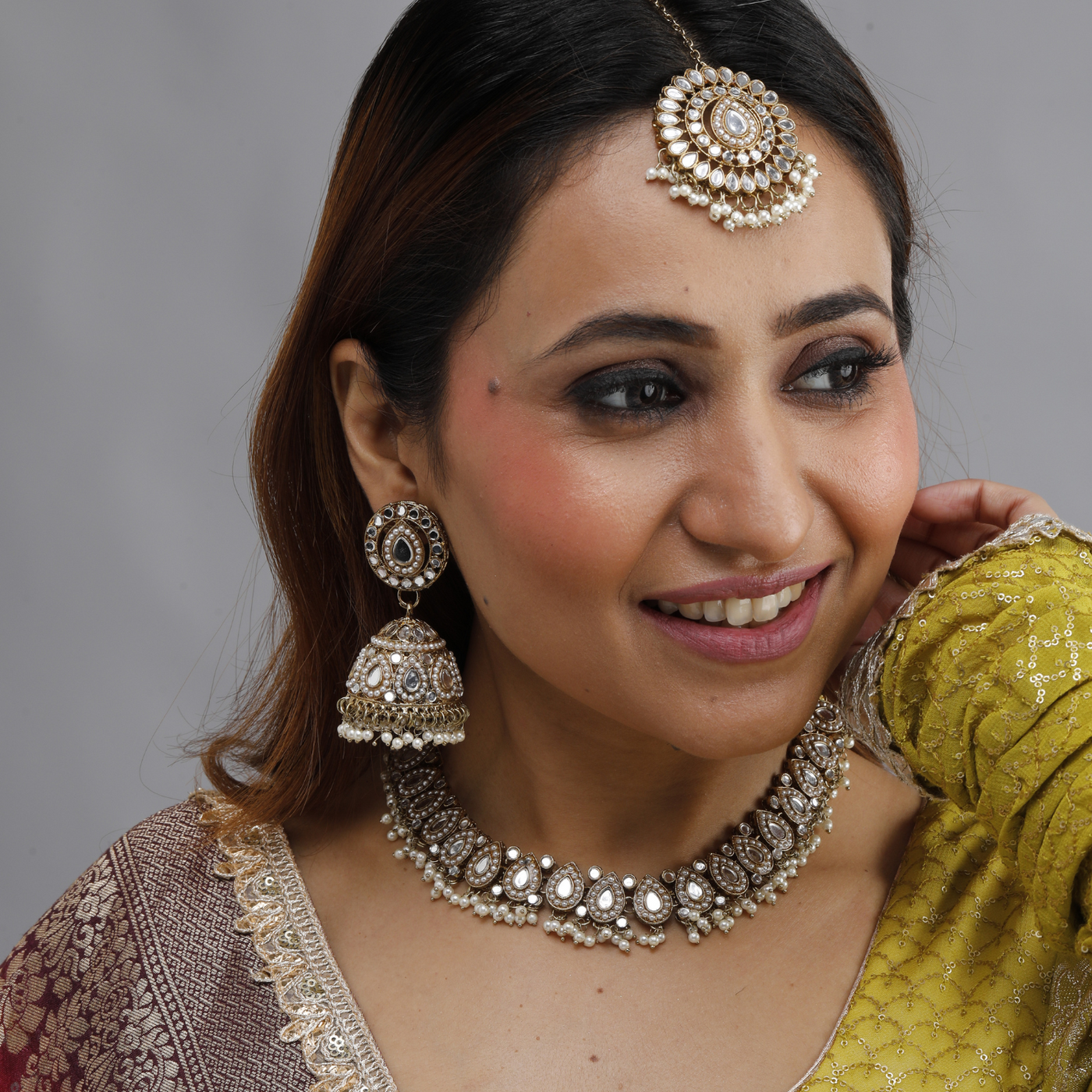 - Adornments: Crafted with premium Kundan stones and colorful bead accents.