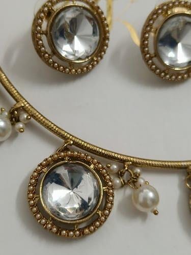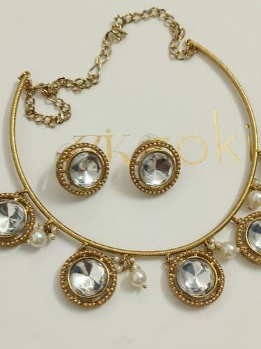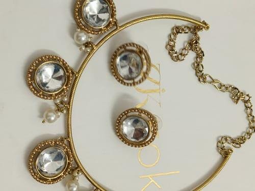Elevate your traditional look with this elegant Kundan Polki Necklace Set, designed to blend classic charm with chic style. The...