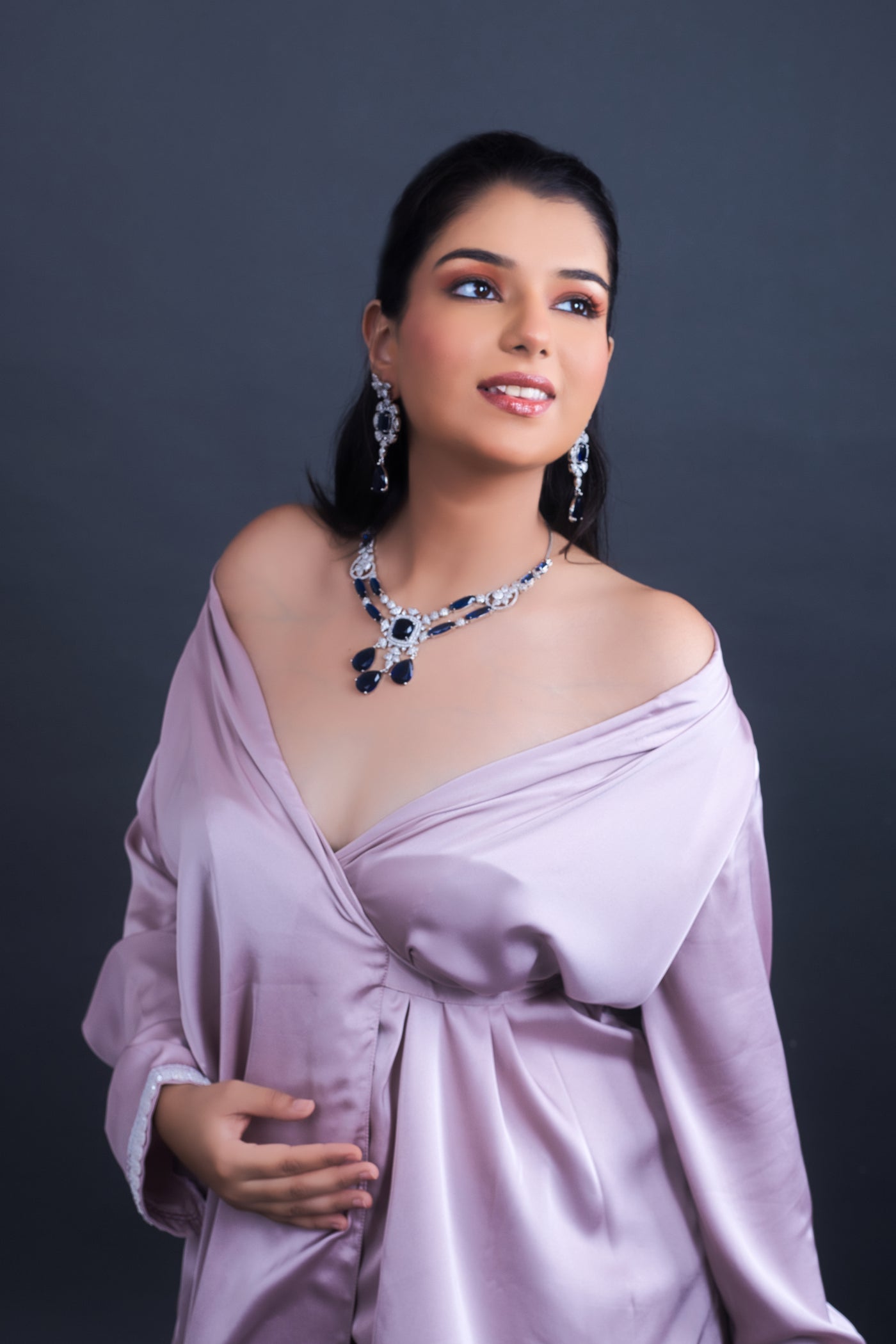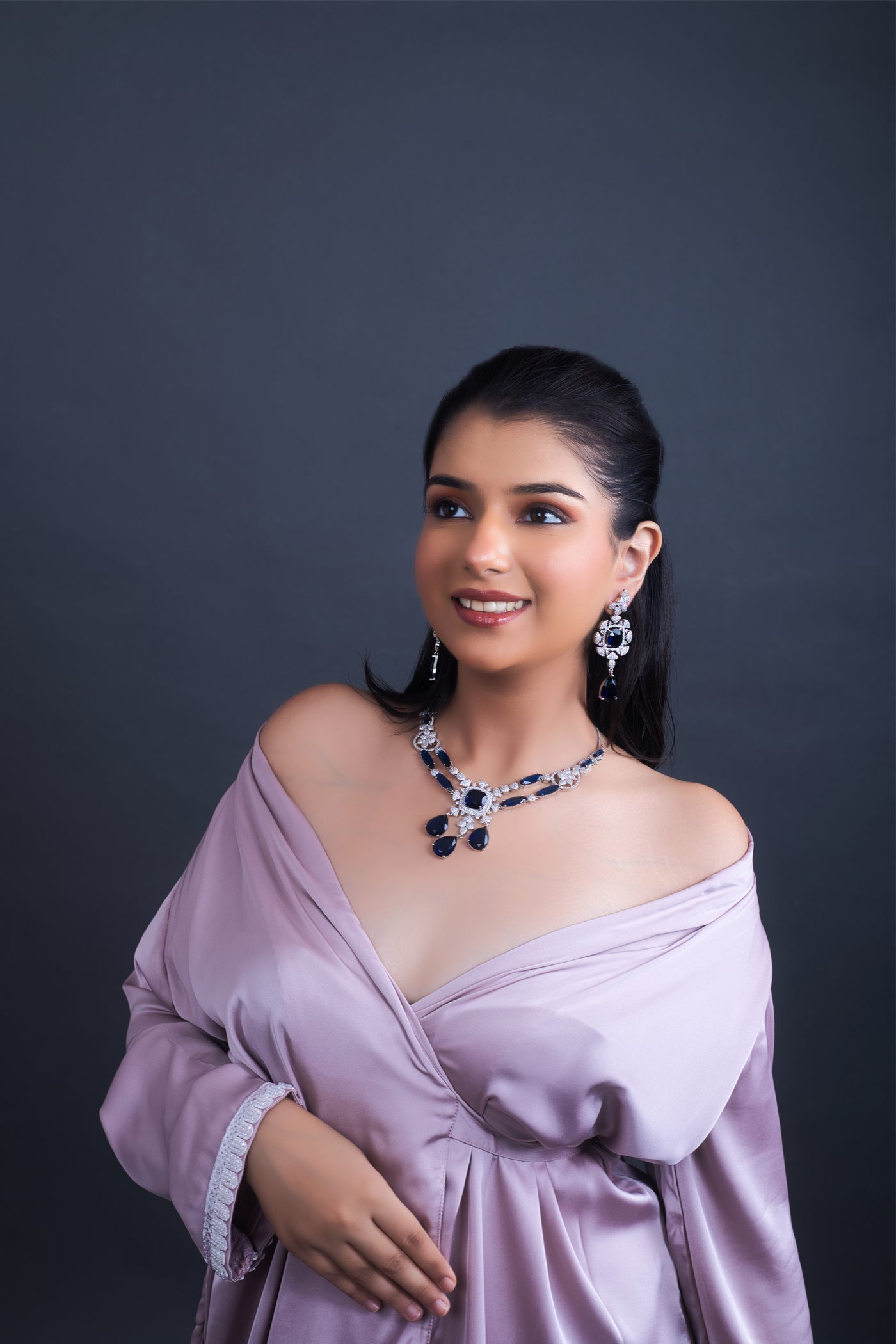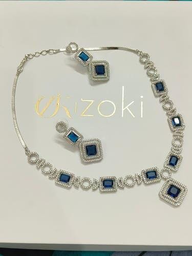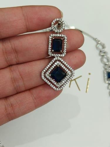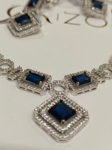 Add a touch of glamour with this Sapphire-Blue Statement Necklace Set, featuring vibrant sapphire-blue zircon stones accented with clear cubic...
