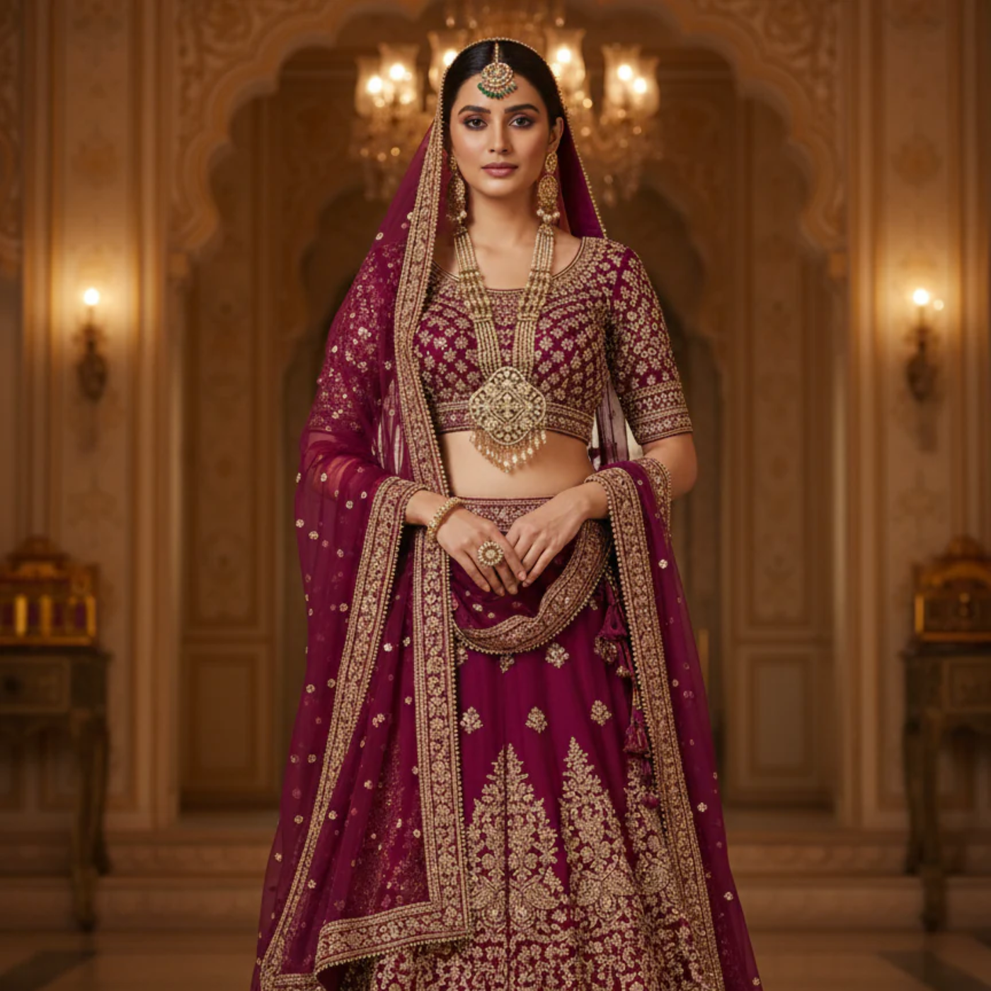With luxurious golden finishes, timeless pearl detailing, and meticulous craftsmanship, this set is a versatile addition to your collection, pairing beautifully with sarees, lehengas, and anarkalis.