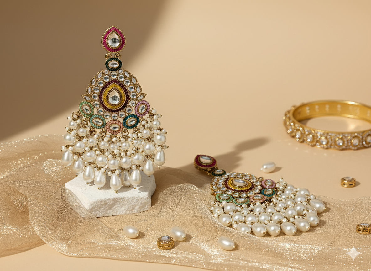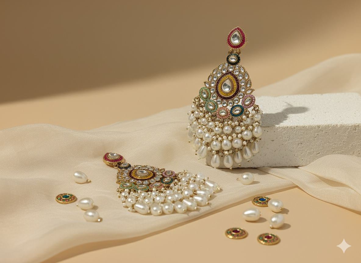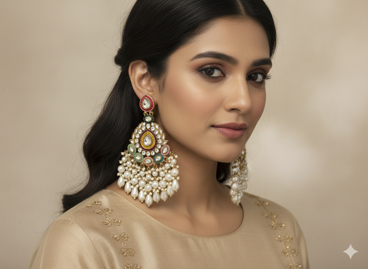 Add a pop of color and elegance with these stunning Multicolor Pearl Jhaale Earrings. Designed with delicate pearl drops in...