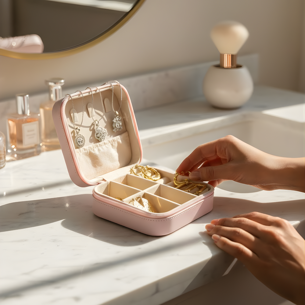 Anti-Tarnish Earring & Pendant Combo Set with Travel Jewelry Organizer