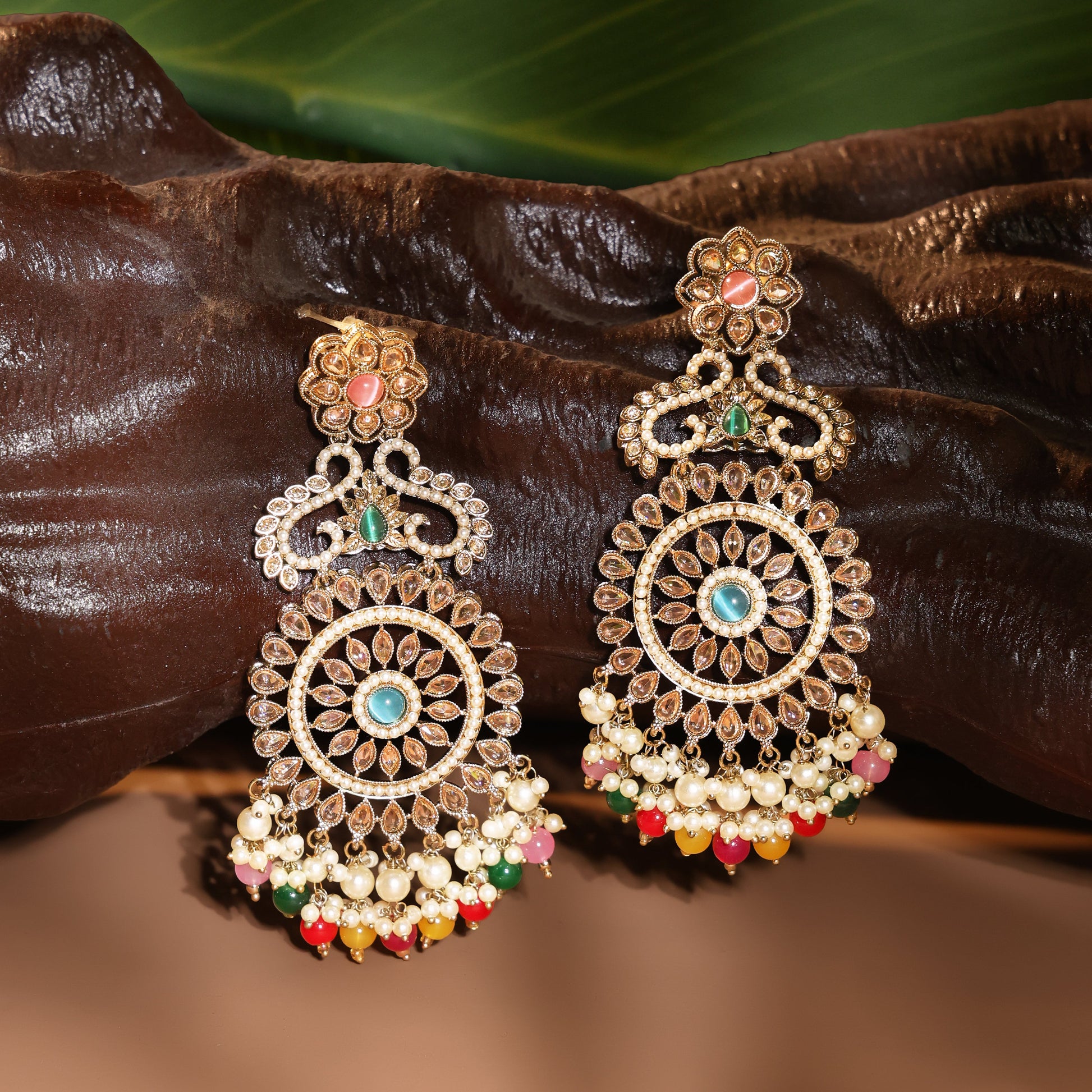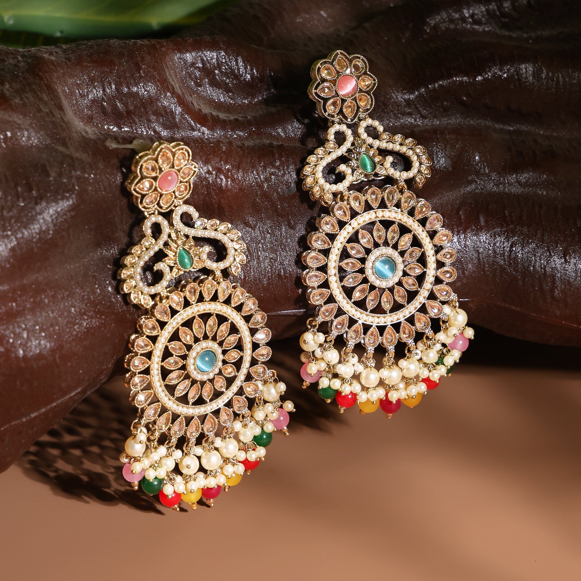 Unleash a spectrum of style with our Mallika Moti Jhaale. Each pair is a kaleidoscope of colors, ready to elevate your look with their unique, multi-hued design.
