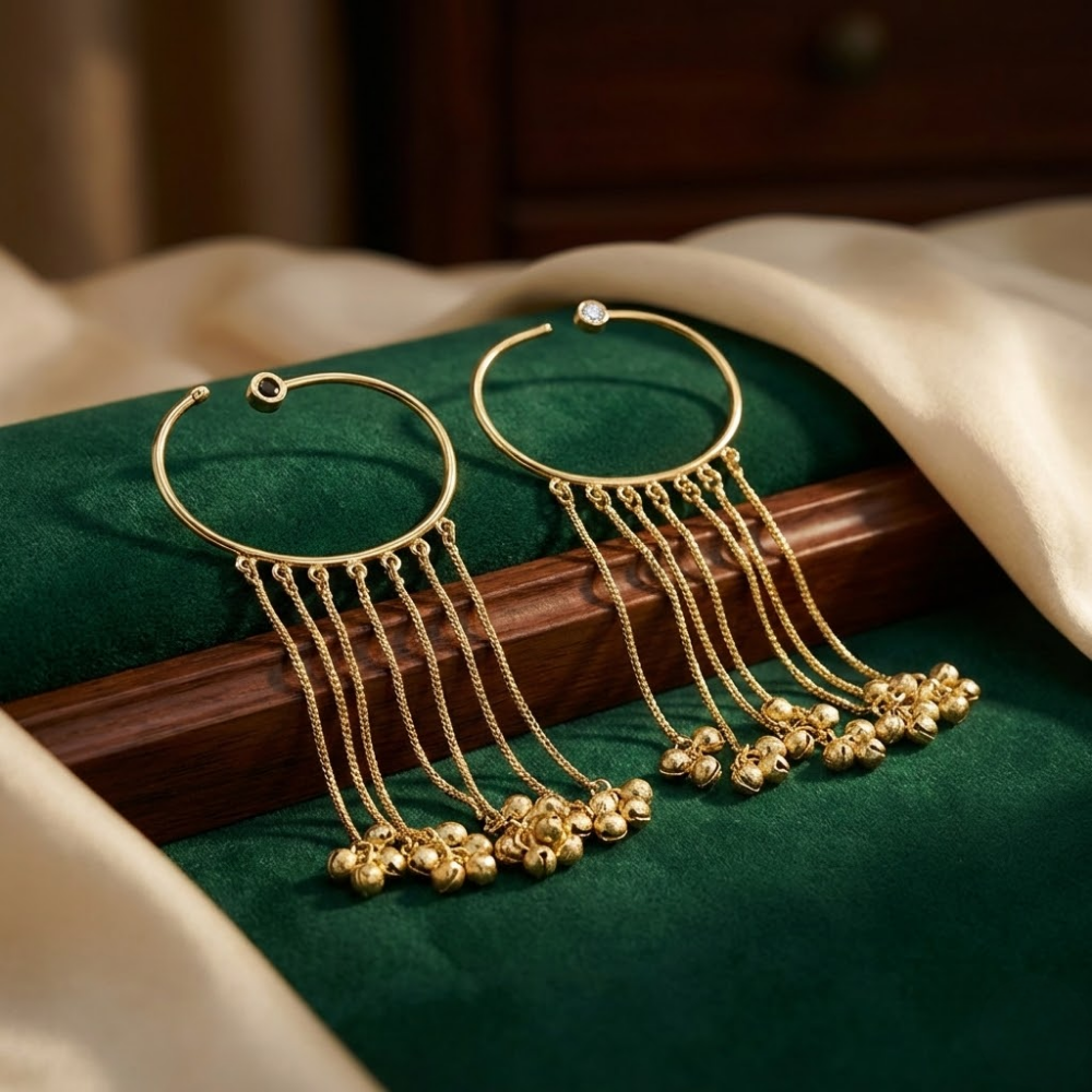 Add effortless glam to your everyday style with this minimal gold chain tassel ear cuff, designed for a sleek, modern and statement finish. Featuring multiple fine chains flowing down into delicate gold bead drops, this piece creates a stunning cascading effect that looks bold yet elegant from every angle.