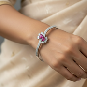 Add a touch of timeless elegance to your style with the Soha AD Openable Bracelet. This stunning piece is crafted with premium American Diamonds (AD) set on a durable brass base and finished in a luxurious Silver Vermeil polish. Designed with an openable clasp, it ensures both comfort and convenience for everyday wear or special occasions.